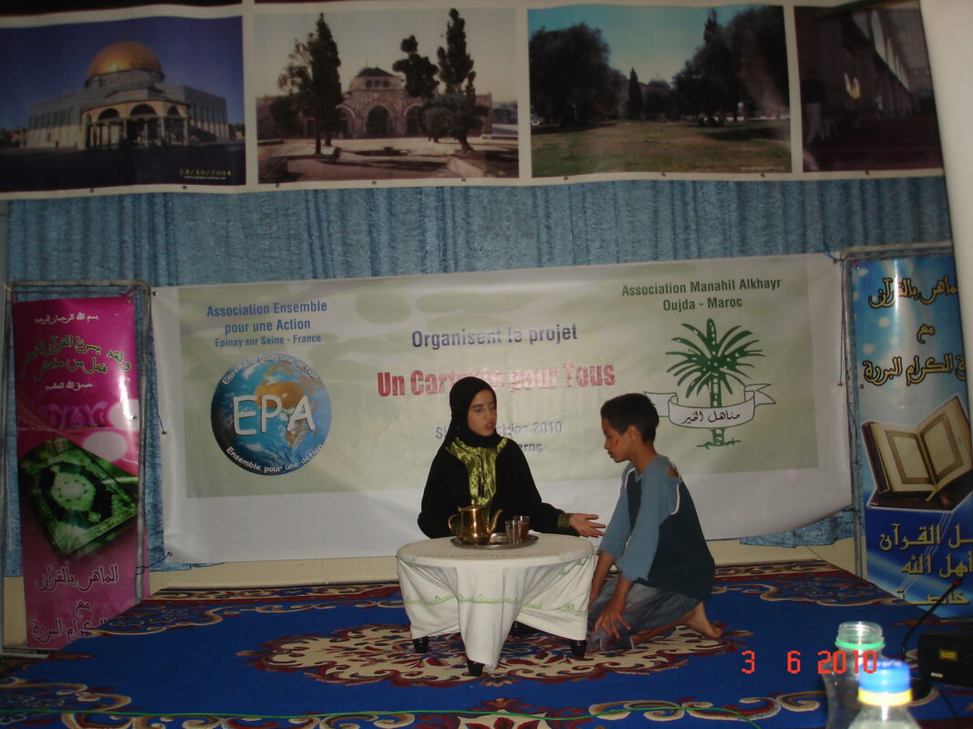 وفي سياق دعم التمدرس ومكافحة الهدر المدرسي، تستقبل اللجنة التربوية لجمعية مناهل الخير – وجدة كل سنة جمعية EPA، التي تُشرف على عرض مسرحي باللغة الفرنسية، من تقديم أطفال الجمعية وبتأليف الكاتب المسرحي بنسعيد أحمد.